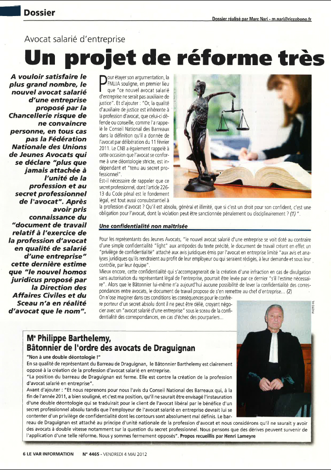 Publié le : 04/05/2012 04 mai mai 05 2012actus presse" Non à une double déontologie ! " En sa qualité de représentant du Barreau...