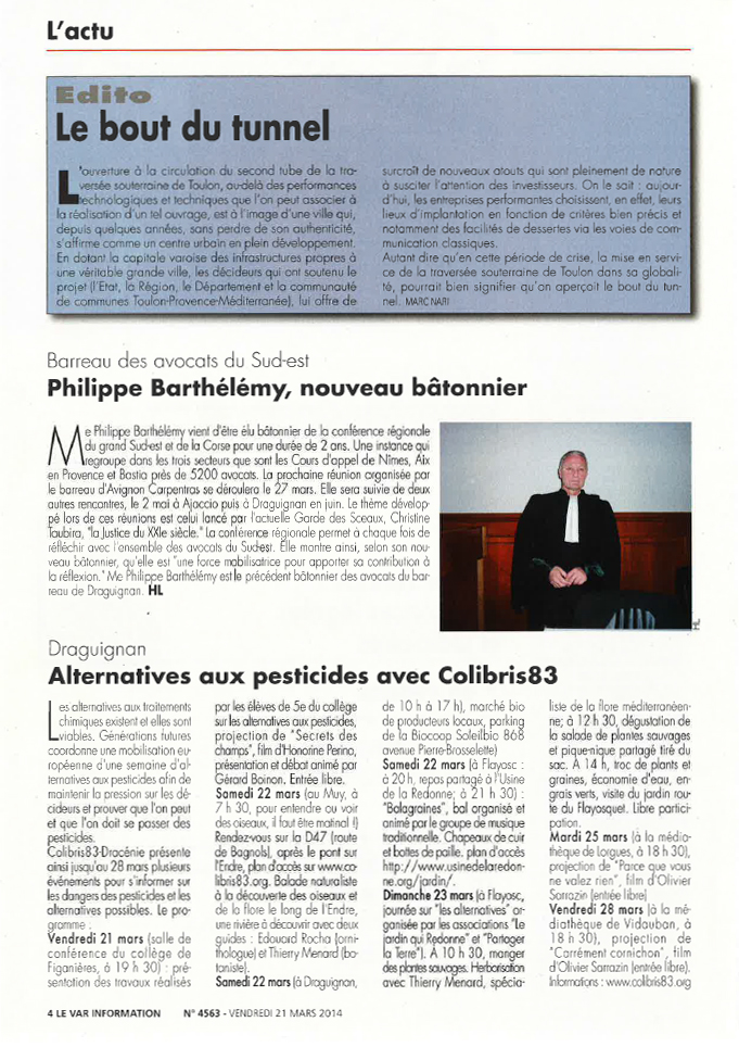 Publié le : 21/03/2014 21 mars mars 03 2014actus presseBarreau des avocats du Sud-est : Philippe Barthélémy, nouveau bâtonnier. M...