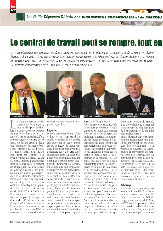 Publié le : 10/01/2014 10 janvier janv. 01 2014actus presseLe petit-déjeuner du barreau de Draguignan, organisé le 6 décembre dernier au...