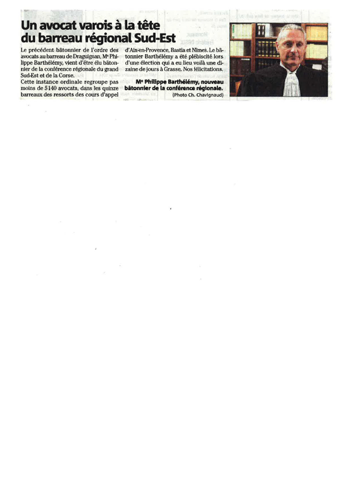 Publié le : 31/05/2016 31 mai mai 05 2016actus presseLes avocats inscrits au Barreau de Draguignan ont élu hier leur "bâtonnier dé...