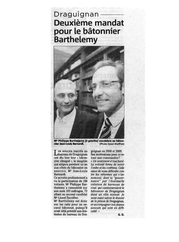 Deuxieme mandat pour le bâtonnier Barthelemy