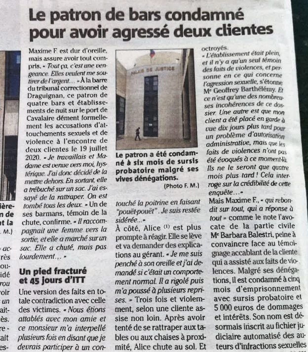 Le patron de bars condamné pour avoir agressé deux clientes