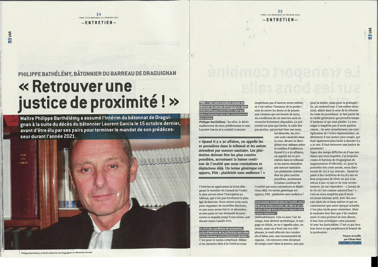 Philippe Barthélémy élu bâtonnier du barreau dracénois