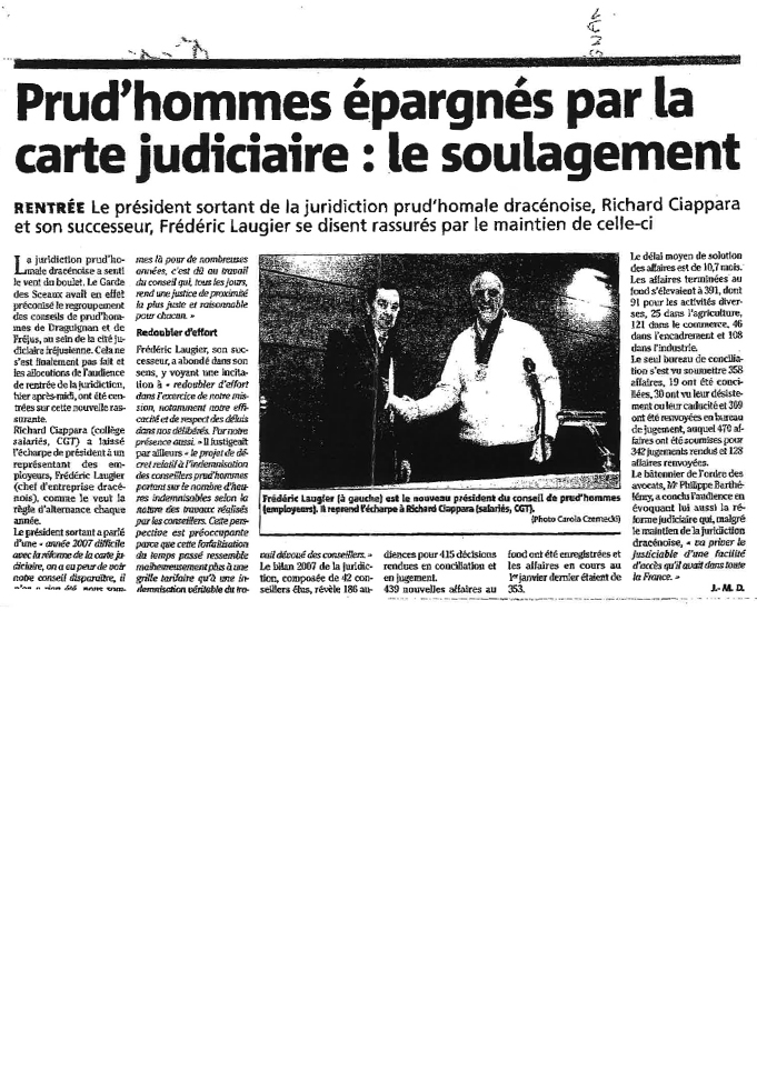 Publié le : 31/05/2016 31 mai mai 05 2016actus presseRentrée. Le président sortant de la juridiction prud'homale dracénoise, Richa...